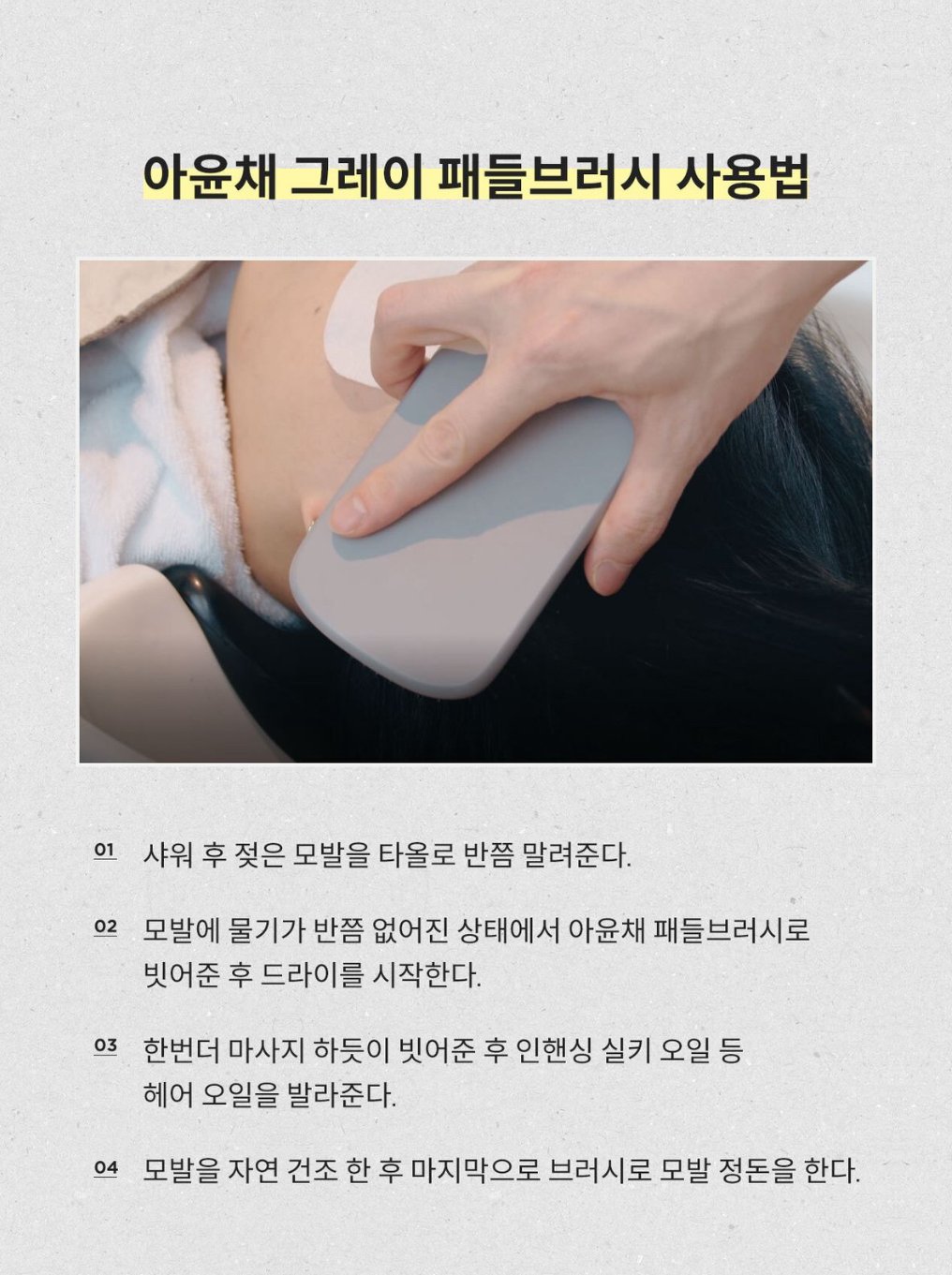 品牌:AYUNCHE 名稱:Paddle Brush 體積:7.5cm X 25cm 產地:韓國 簡介: 梳理頭髮及頭皮,能促進血液循環,發揮按摩的效果。