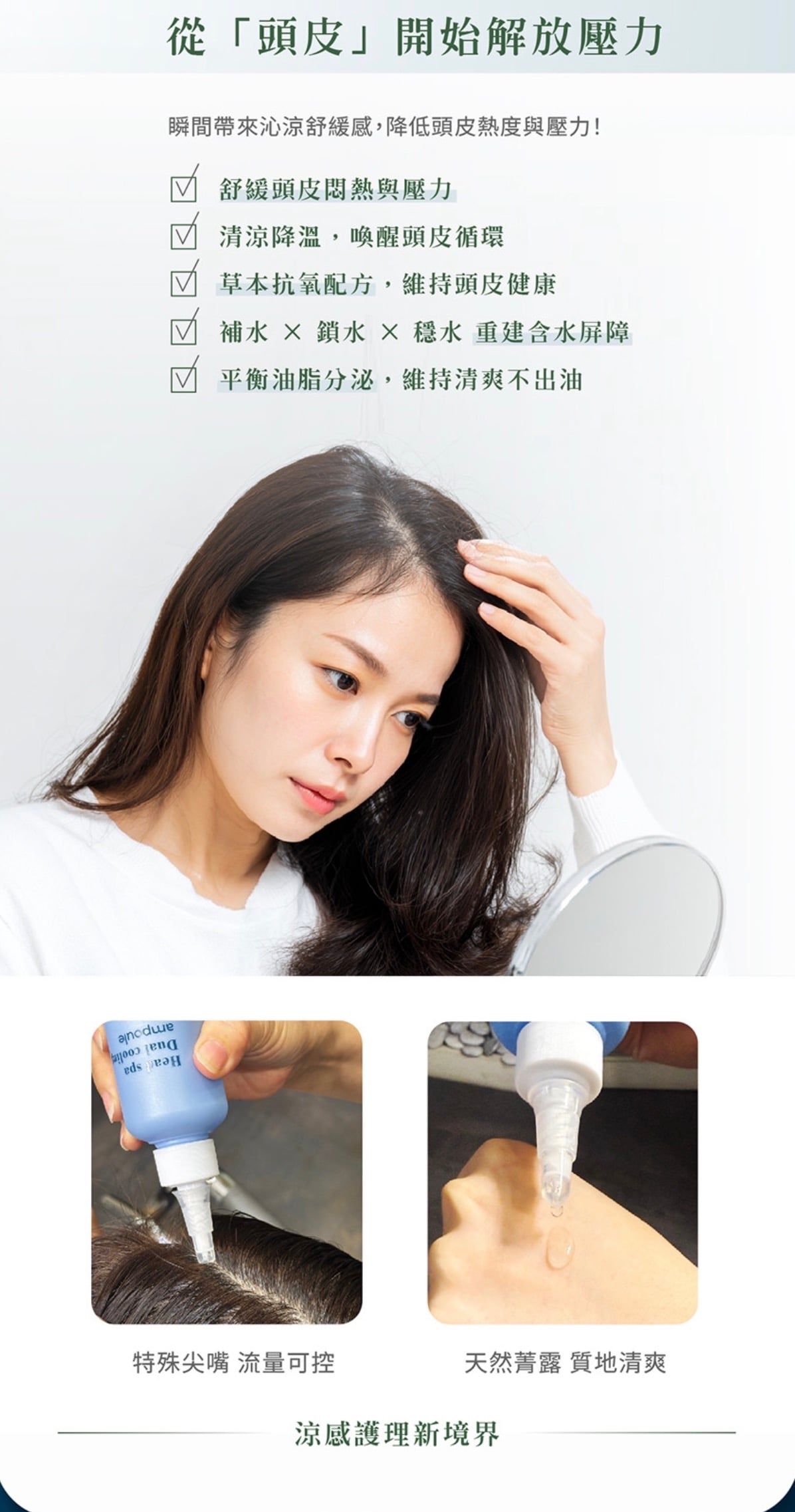 - 雙效倍薄荷提升暢快清涼,降低頭皮熱度